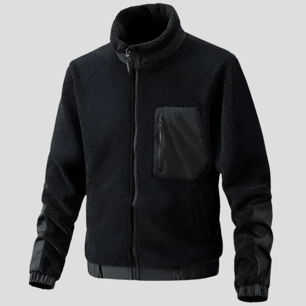 Designed for outdoor wear, this men’s fleece jacket mixes utility features with weather-adapted fabric. Reinforced seams and secure zip closure make it a reliable pick for layering or outer use during cold outings.