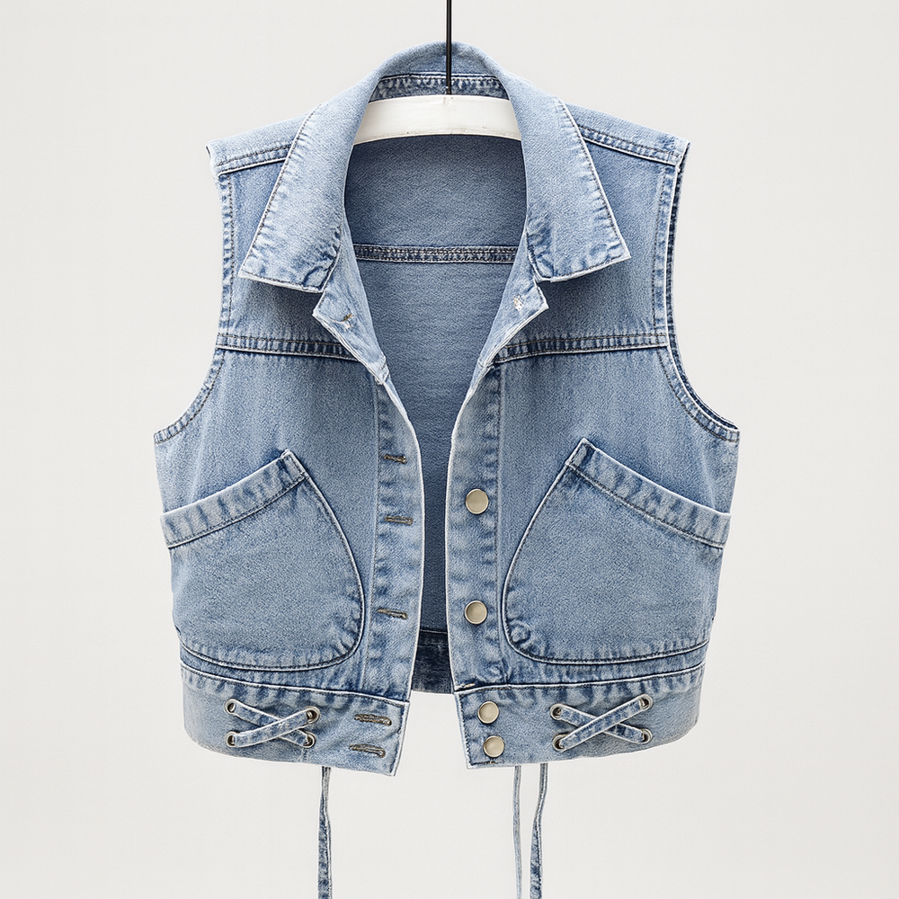Elevate your everyday outfits with the denim vest, a classic piece designed for effortless layering. Made from lightweight non-woven fabric, it offers a comfortable fit ideal for juniors and warmer seasons.