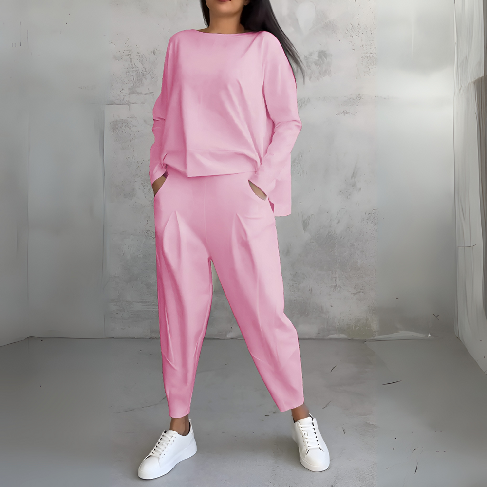 Two-Piece Leisure Suit with Round Neck and Long Sleeves