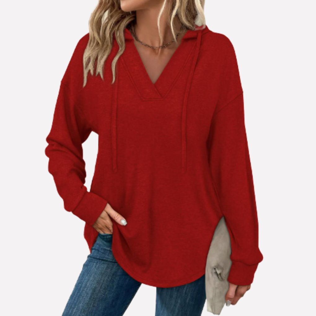 This oversized hoodie features a relaxed V‑neck design that pairs well with casual outfits for daily wear. Its roomy silhouette and long sleeves make it suitable for layering with jeans, leggings, or skirts during cooler weather. A versatile wardrobe piece for everyday styling.