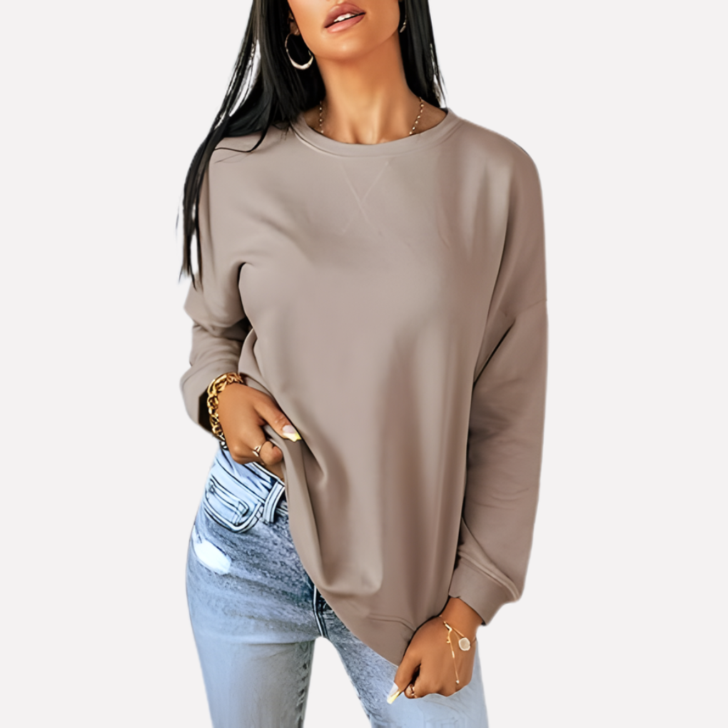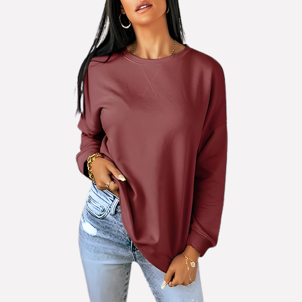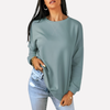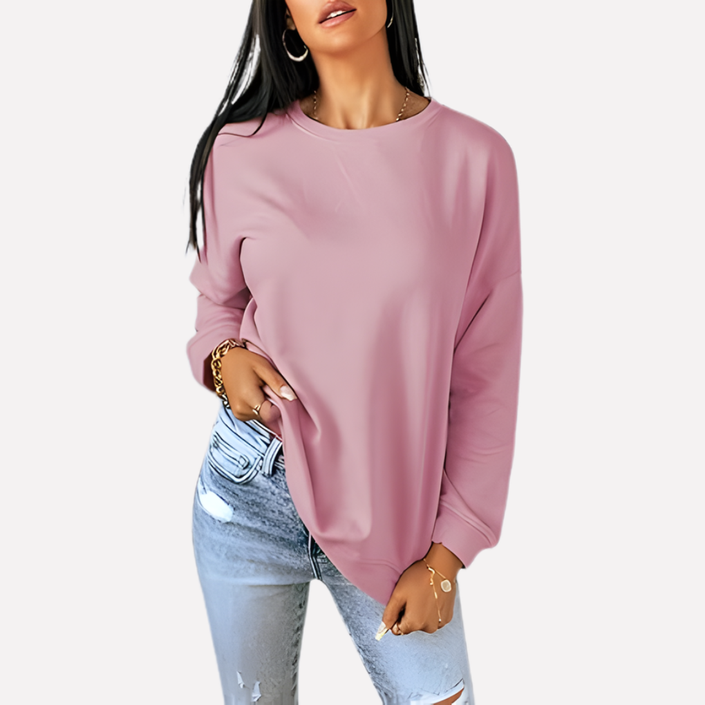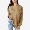This women’s crew neck sweatshirt features a relaxed, loose cut that pairs well with jeans, leggings, or casual pants. Designed with long sleeves and a classic neckline, it offers a comfortable layering piece for everyday outfits across cooler seasons.