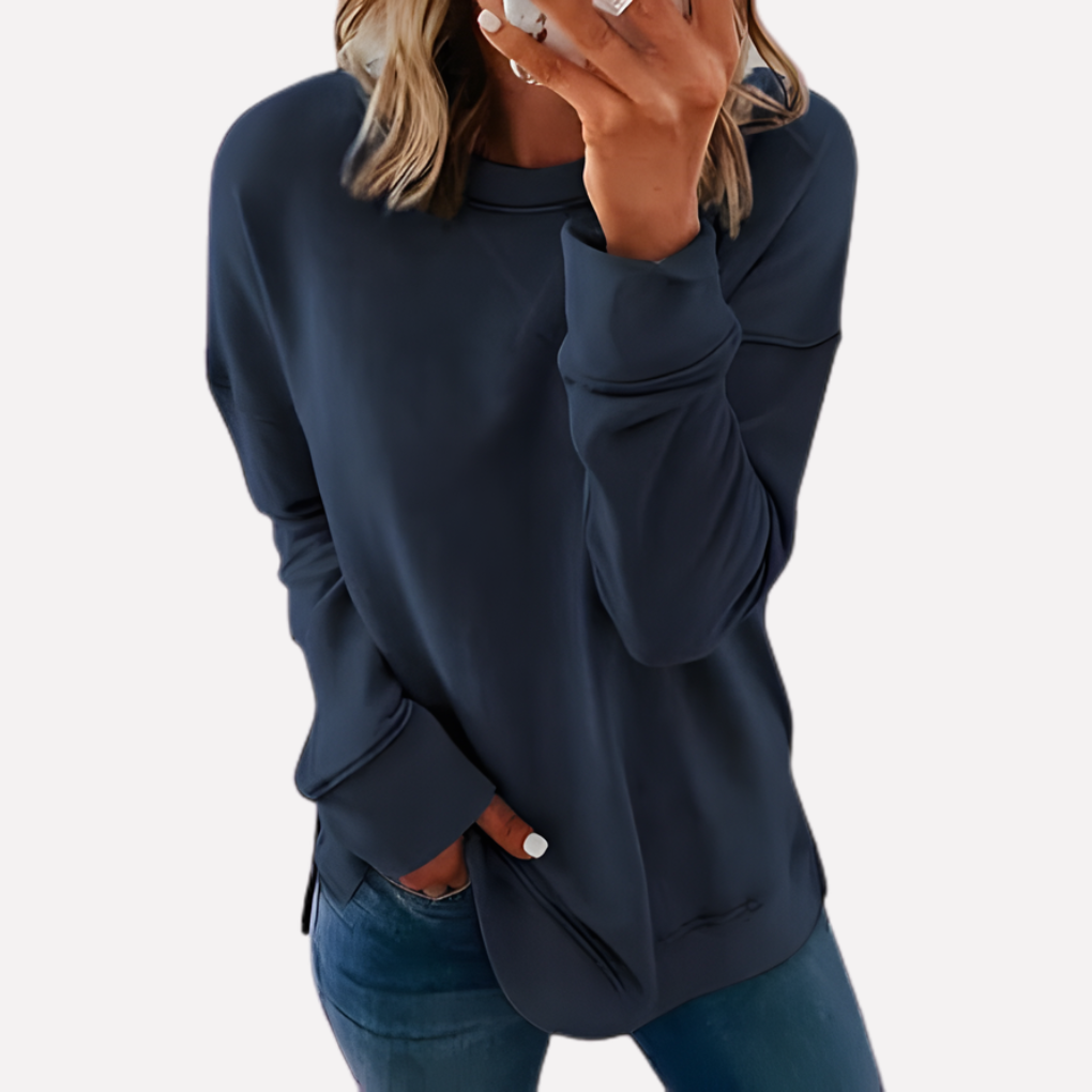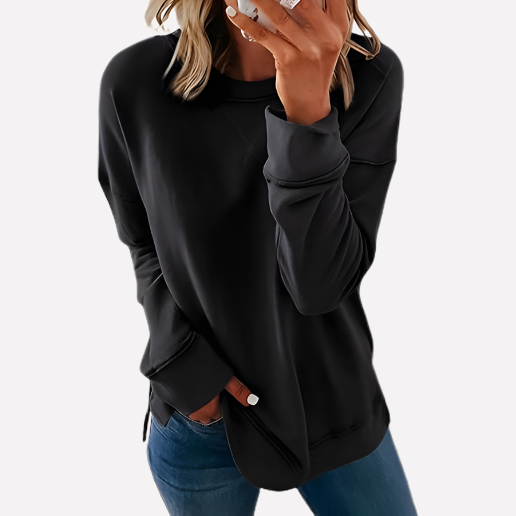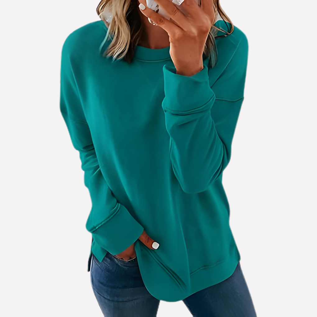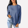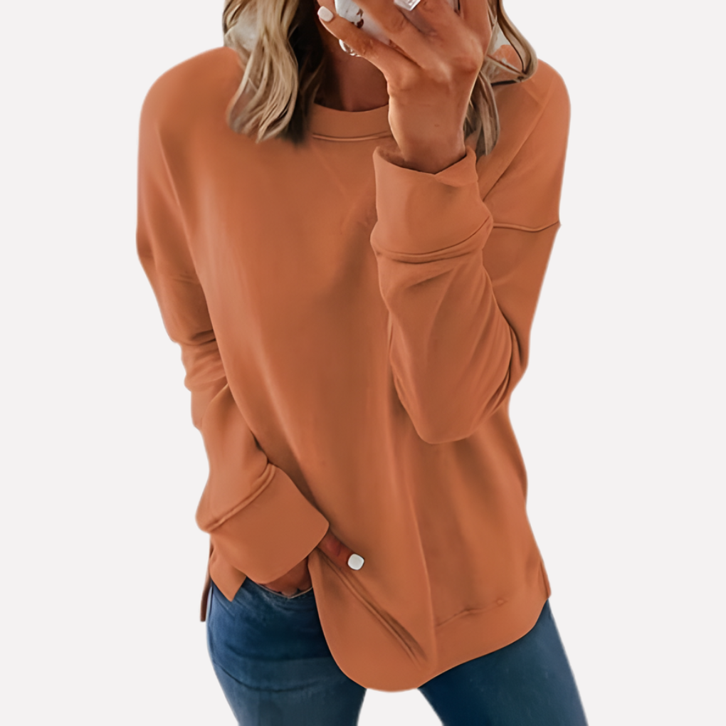 This women’s crew neck sweatshirt features a relaxed, loose cut that pairs well with jeans, leggings, or casual pants. Designed with long sleeves and a classic neckline, it offers a comfortable layering piece for everyday outfits across cooler seasons.