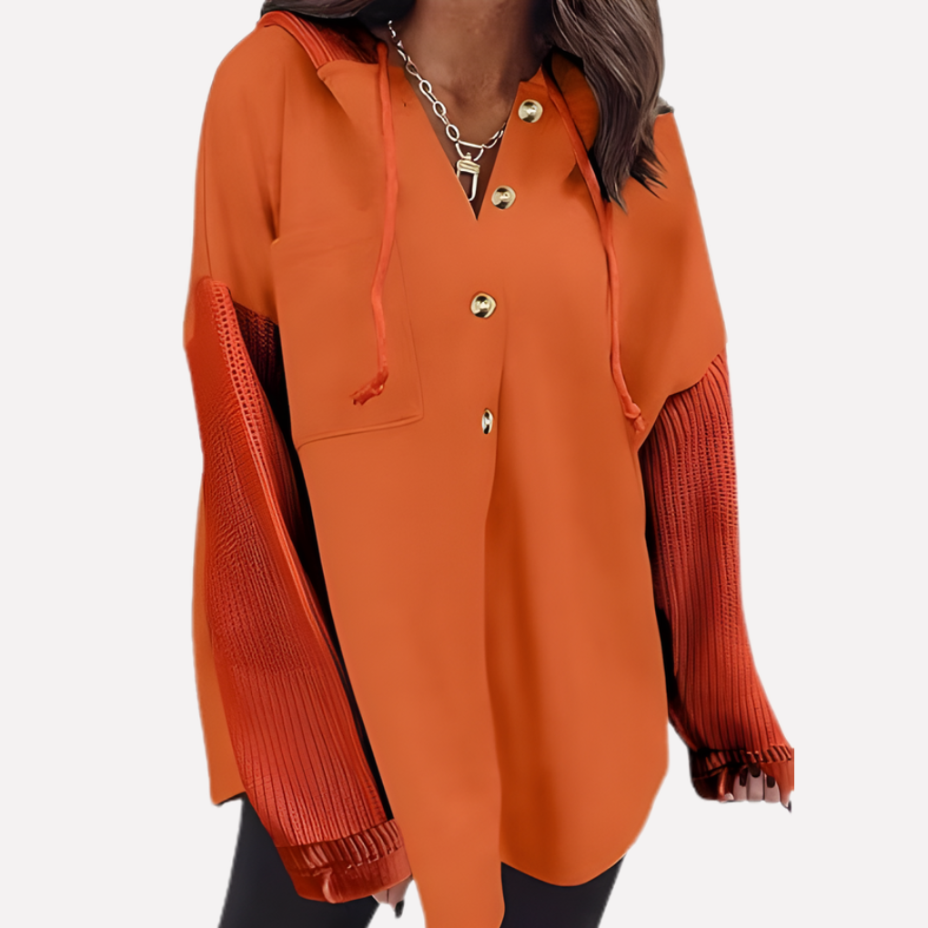 ✔ Hooded design with button‑front detail