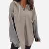 This oversized hooded sweatshirt offers a relaxed silhouette with long sleeves and a button‑front detail for casual everyday wear. Designed with a roomy fit and front pocket, it pairs well with jeans, leggings, or joggers for laid‑back outfits during cooler days.