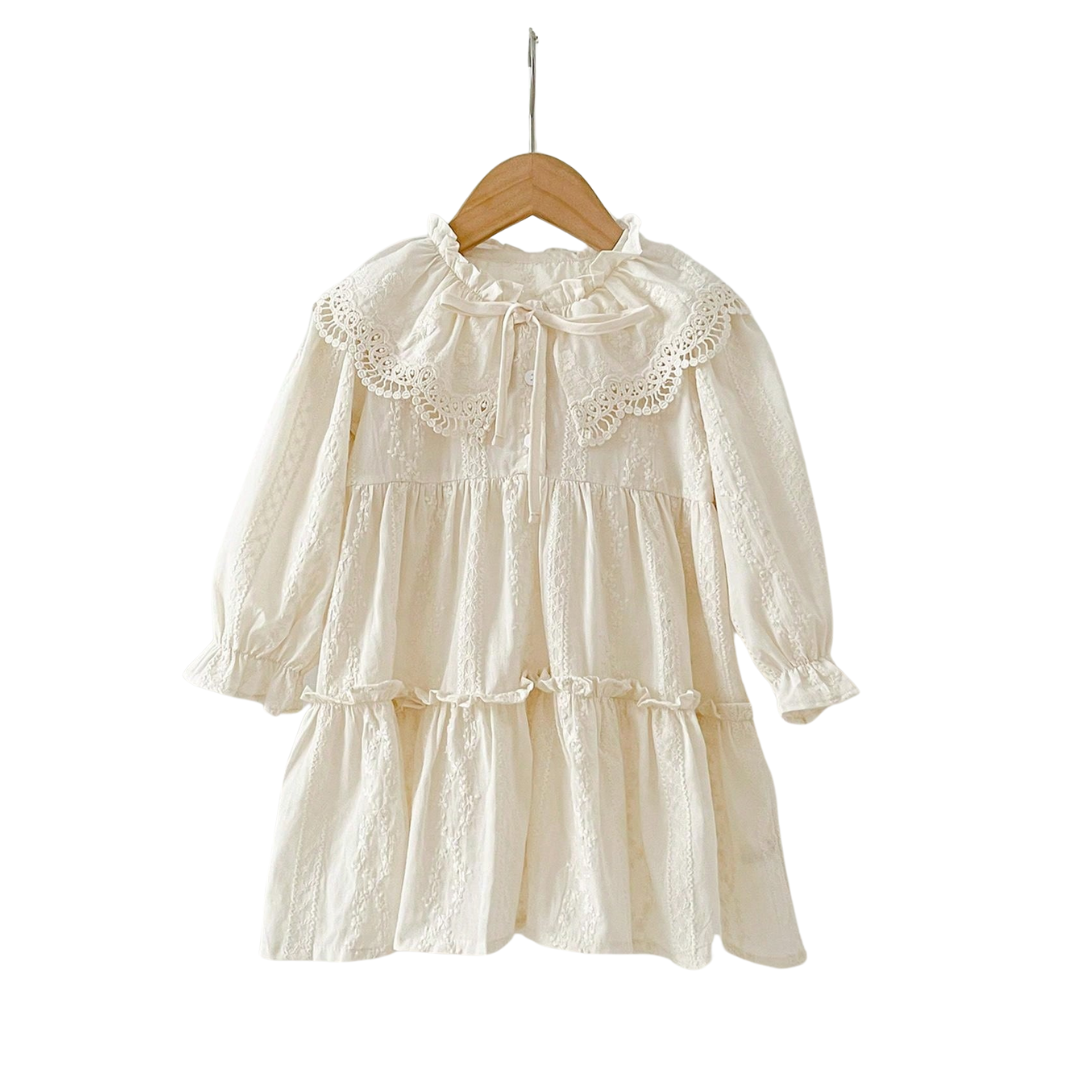 Children's Dress with Lace Collar and Long Sleeves – Vintage Charm for Little Trendsetters