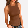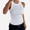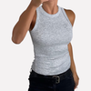 This women’s racerback tank top features a fitted cut and high neck design, offering a sleek base layer for casual outfits. Made with ribbed knit fabric, it pairs well with jeans, shorts, skirts, or layered under jackets and shirts for everyday wear.