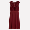 Designed with lace accents and a classic silhouette, this mini dress offers a polished look suitable for parties, dinners, and special gatherings. Its shorter length and lace texture create a standout yet tasteful appearance.