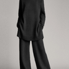 This set brings harmony between top and bottom, offering a polished and cohesive outfit option for various occasions.